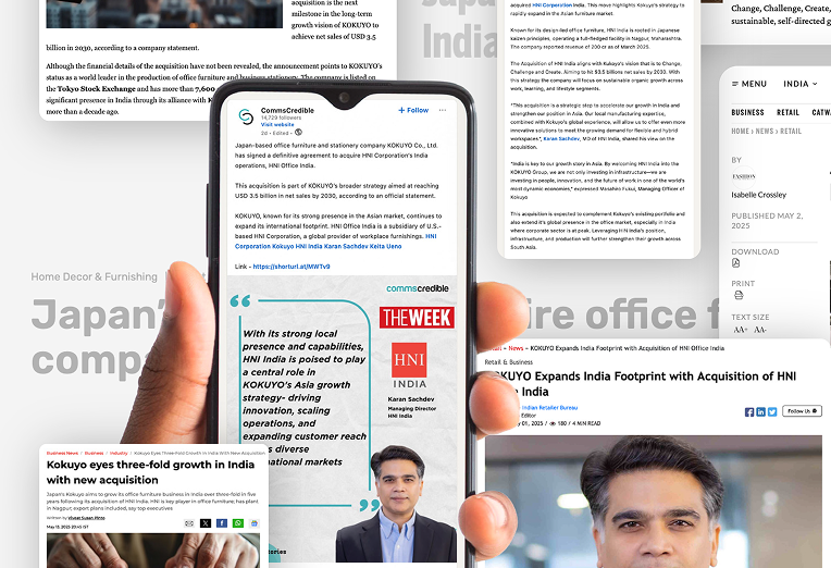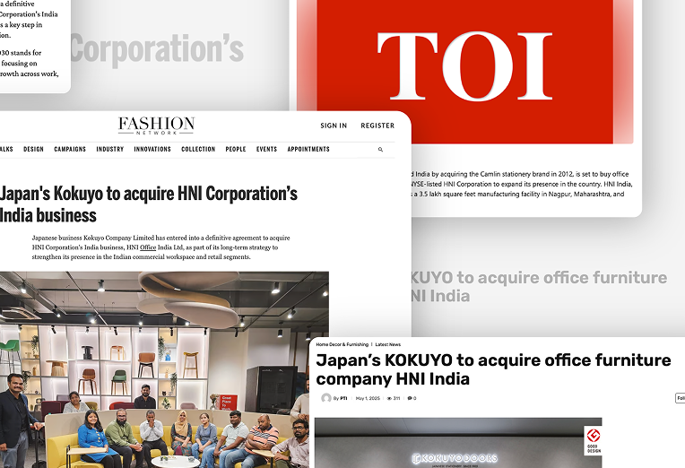 KOKUYO Co., Ltd., a leading Japanese enterprise engaged in office furniture and stationery business, today announced the execution of a binding agreement to acquire the India businesses of HNI Corporation, operating under the brand name of HNI Office India.