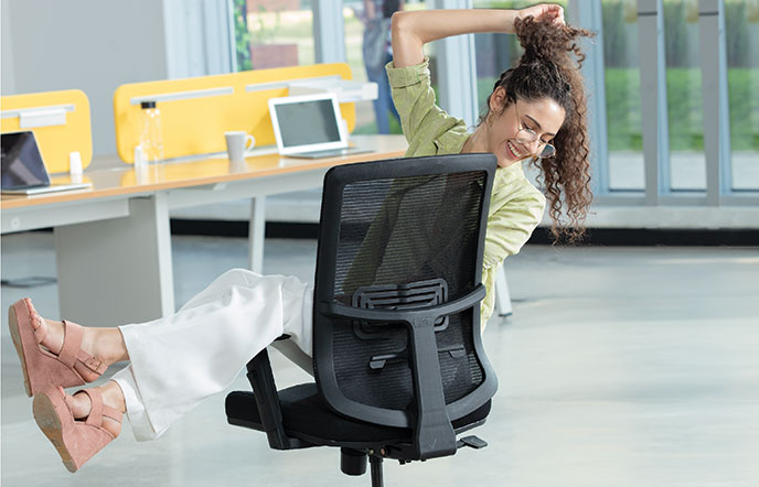 - Stay cool and focused during long work hours with the chair’s mesh back, promoting airflow and reducing discomfort even on the busiest days.
