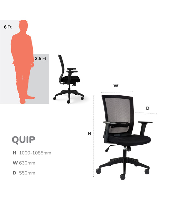 • Elevate your home office setup with the Quip chair, experiencing unmatched support and comfort throughout the day, whether you’re working, attending meetings, or taking short breaks.
