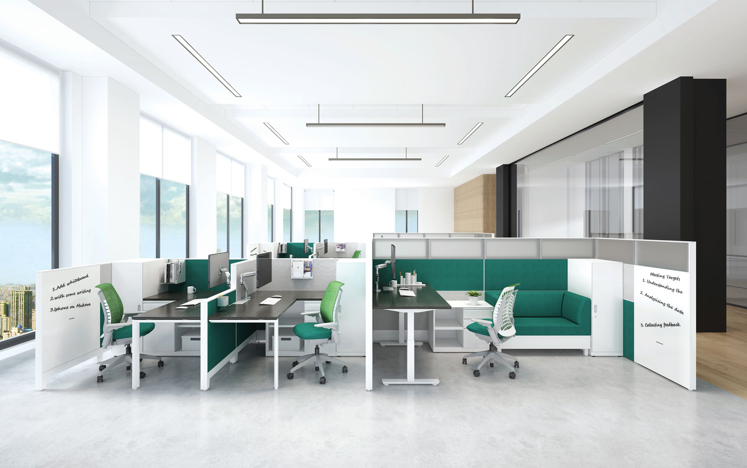 The Avail panel perfectly divides space for optimal performance and interaction. The workstation offers a comprehensive range of panel thicknesses – 30mm, 50mm, and 66mm – to create an open, bright, and collaborative work setting.