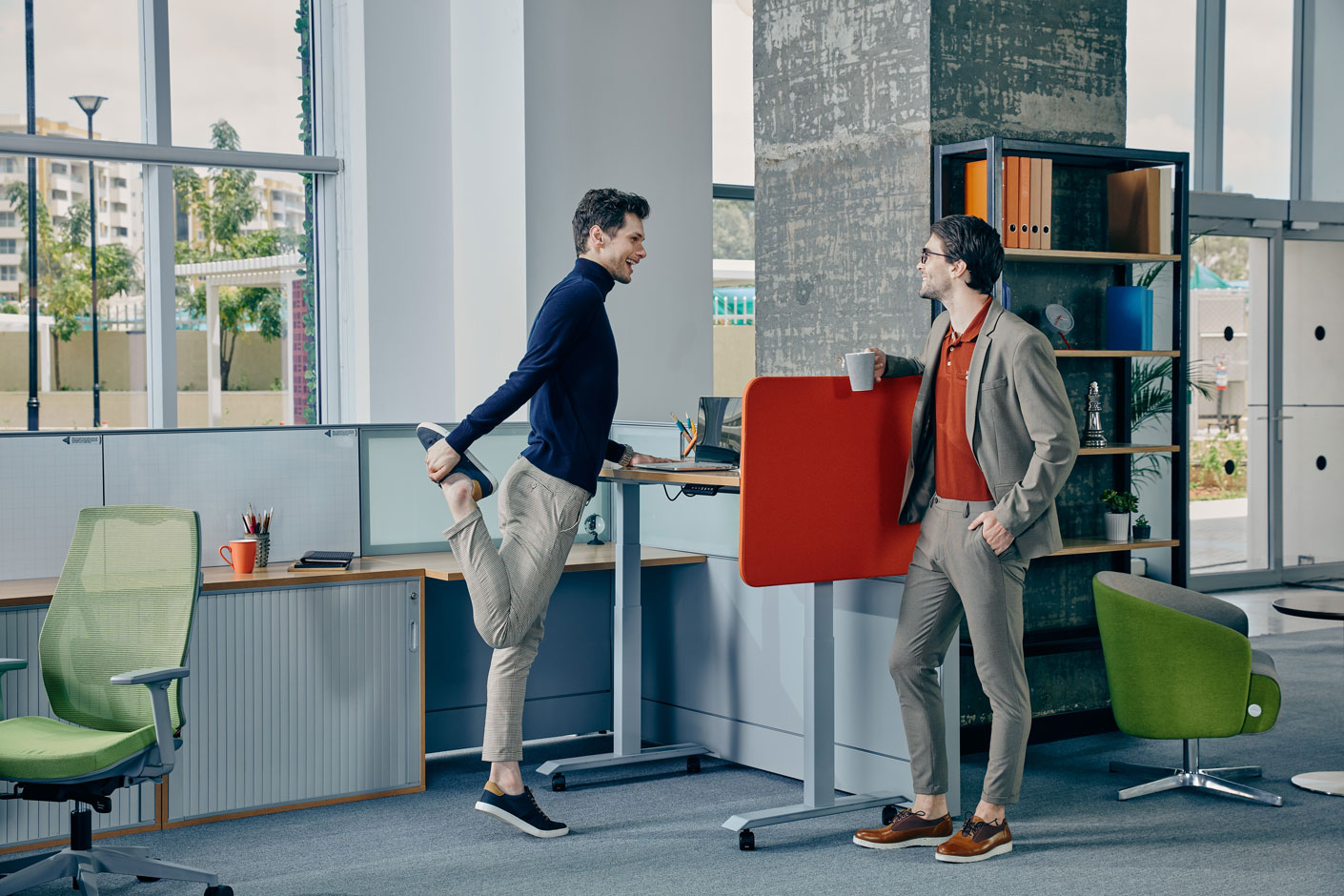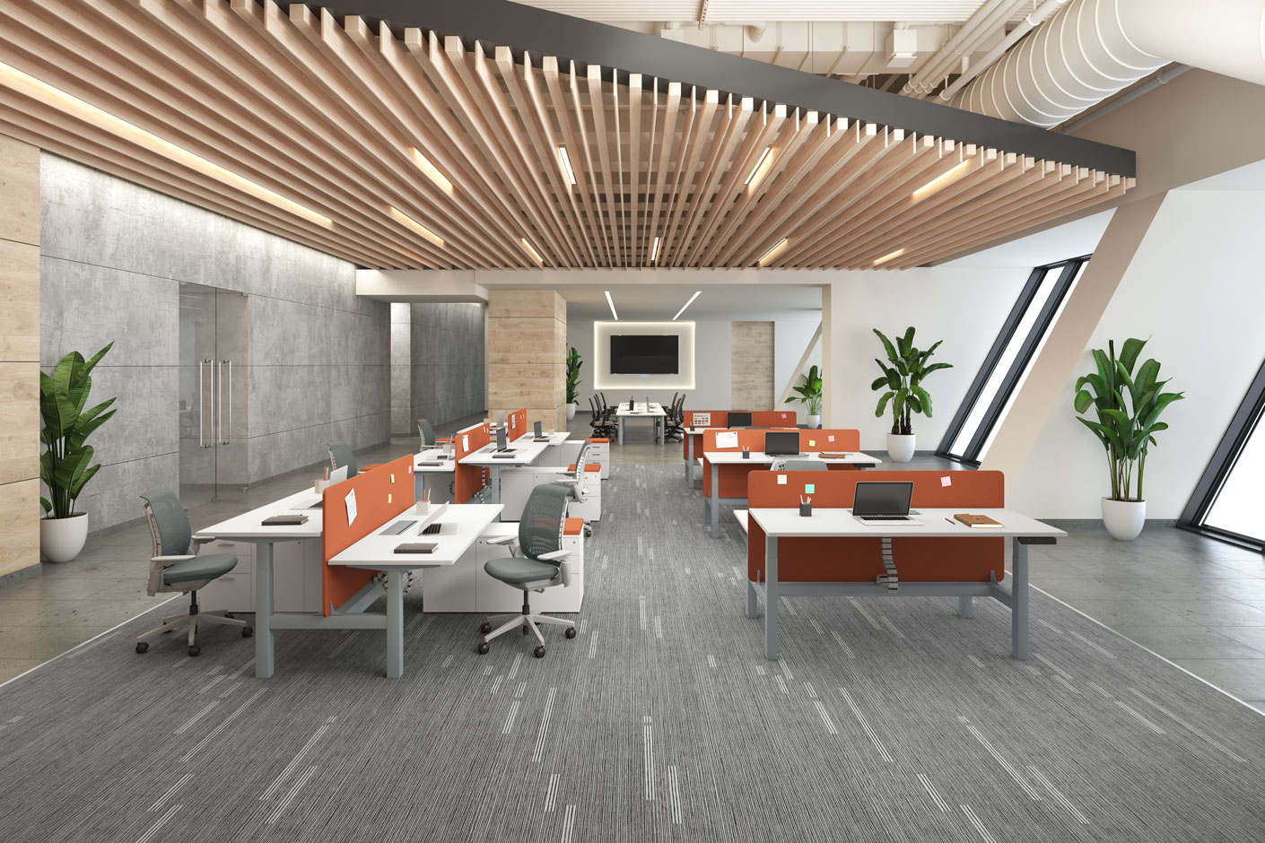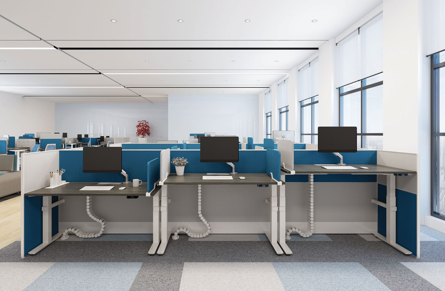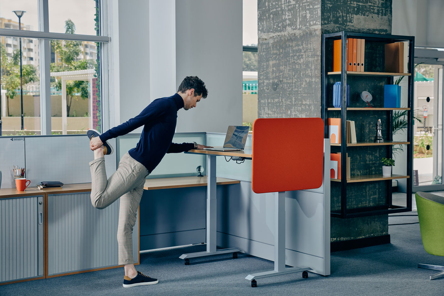The Avail HAT supports various working styles and positions, enabling both sitting and standing heights. Available in different configurations, including L-shape, 120-degree styles, and integrated versions with all Avail panels, it fits every layout and plan.