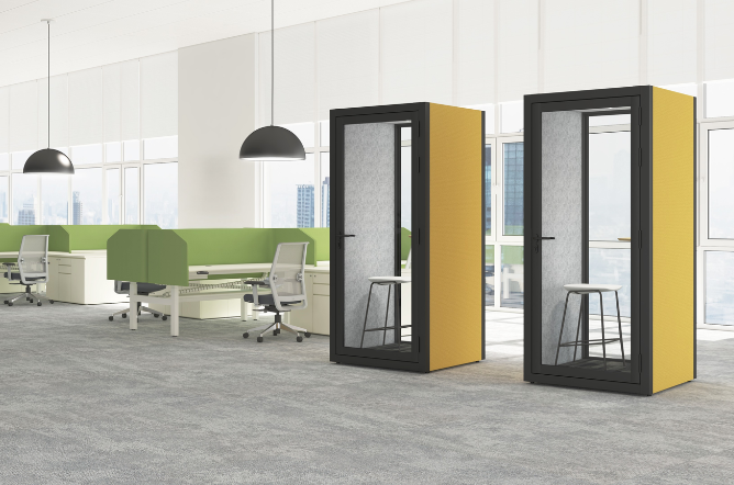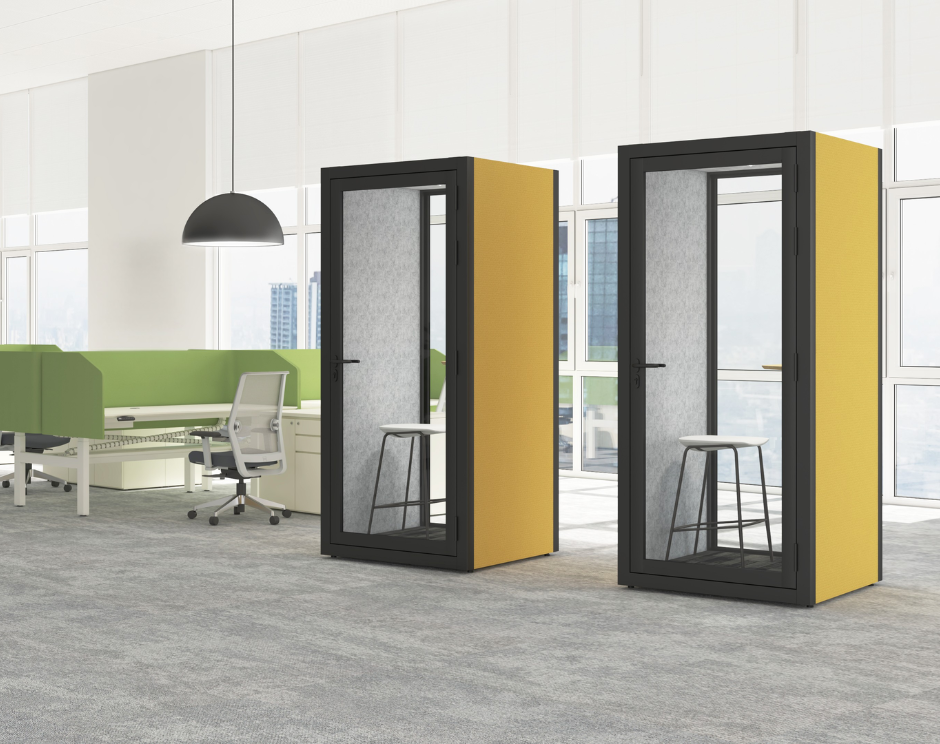 Cuboid is a smart and stylish advanced pod designed to create a solitary atmosphere for working on confidential matters amidst all the chaos. Cuboid provides acoustic design, leading to sound insulation. It features sensor-based lighting inside the booth, along with a working table and other amenities. It has been engineered to help you focus and brainstorm ideas, enhancing productivity by providing pure isolation. It is perfect for a modern office setup, making employees happier and more productive.