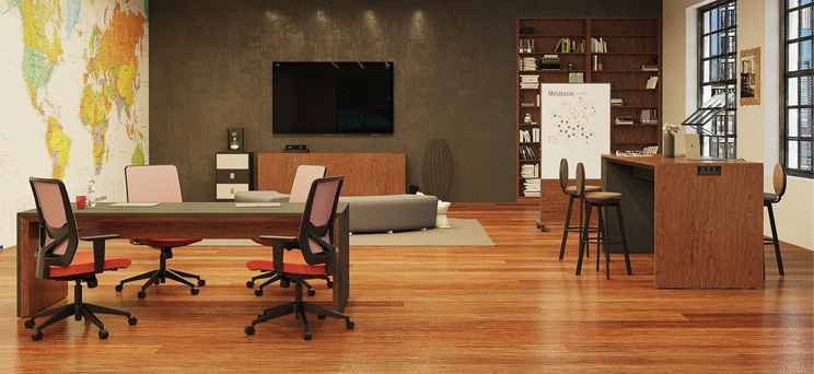 Genre is offered in both seated and standing heights, accommodating different work styles and preferences.