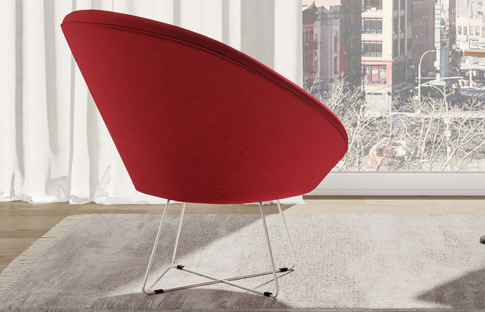Kym combines classic design elements with contemporary flair. Its curved yet conical back provides a unique silhouette that adds a touch of sophistication to any room, making it a versatile piece suitable for various interior styles