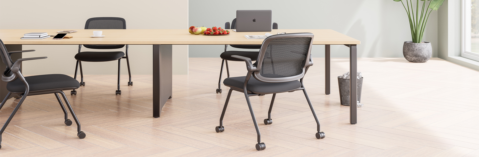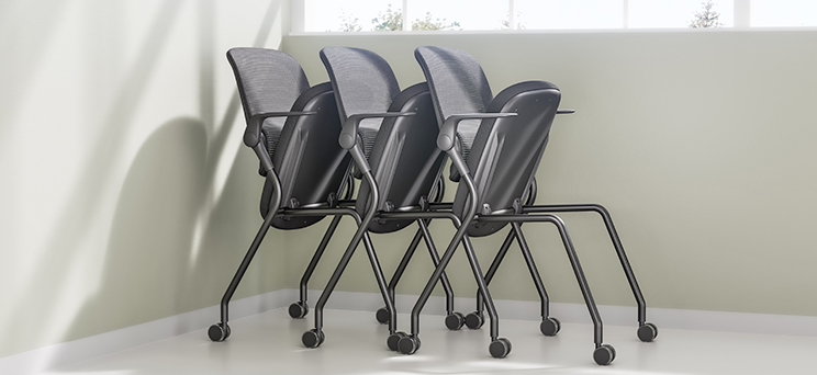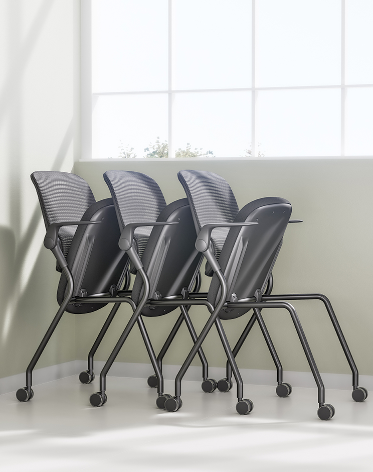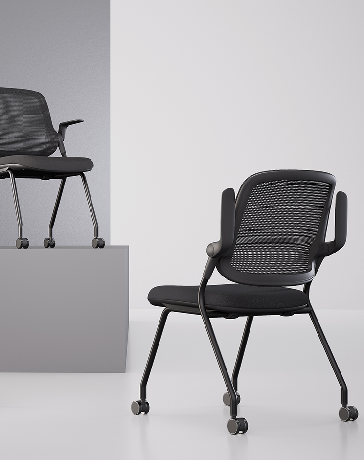 Foldable armrests rotate up to 90°, allowing quick stacking and space-saving storage.