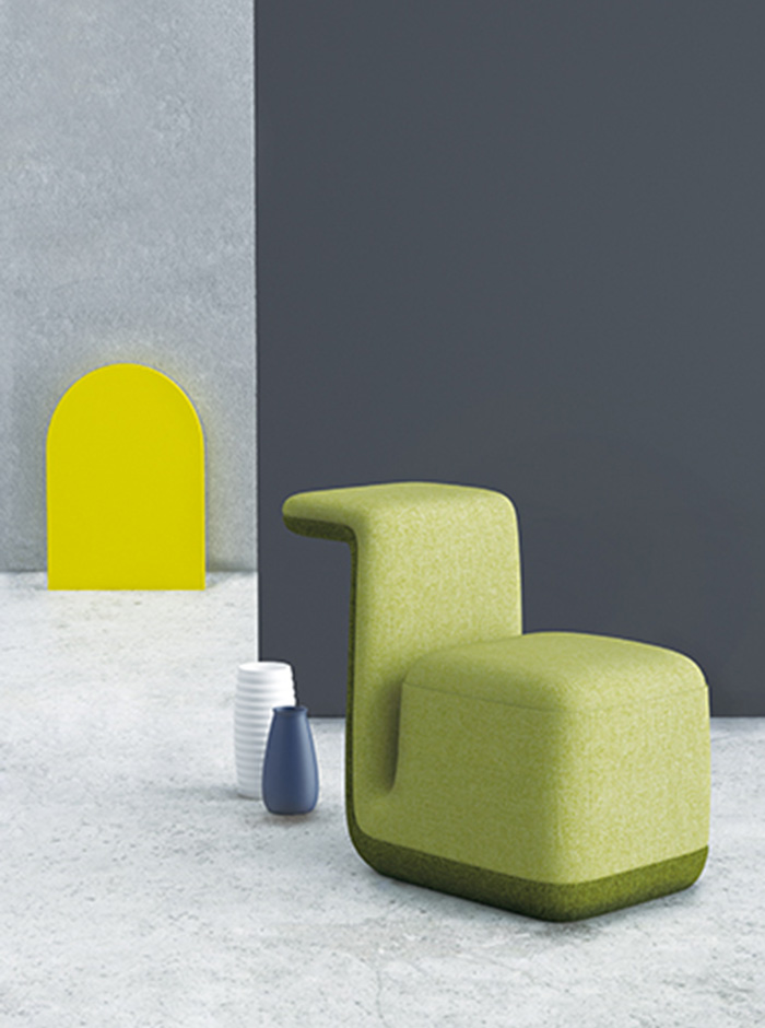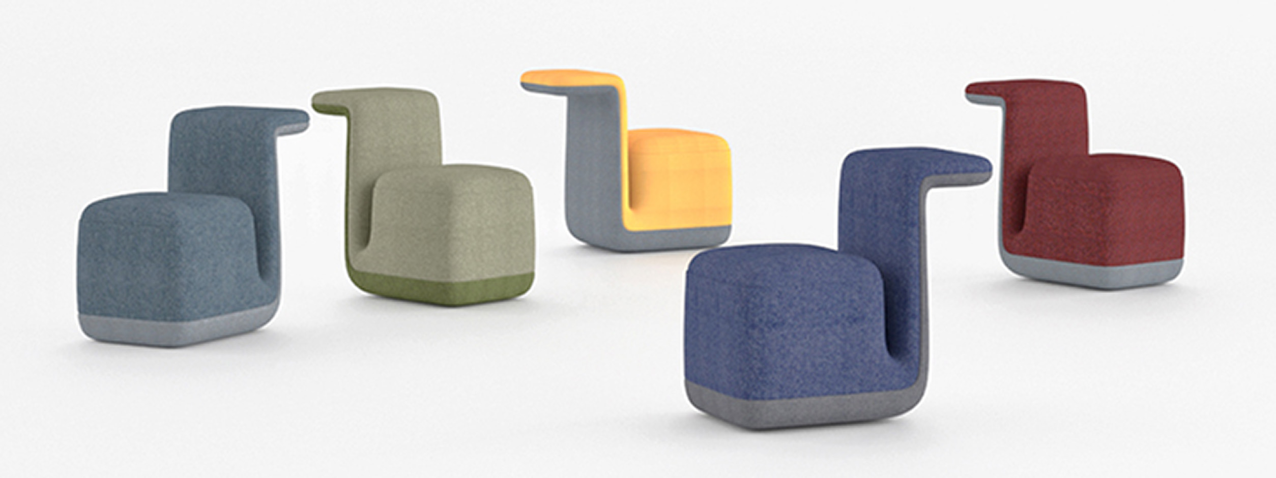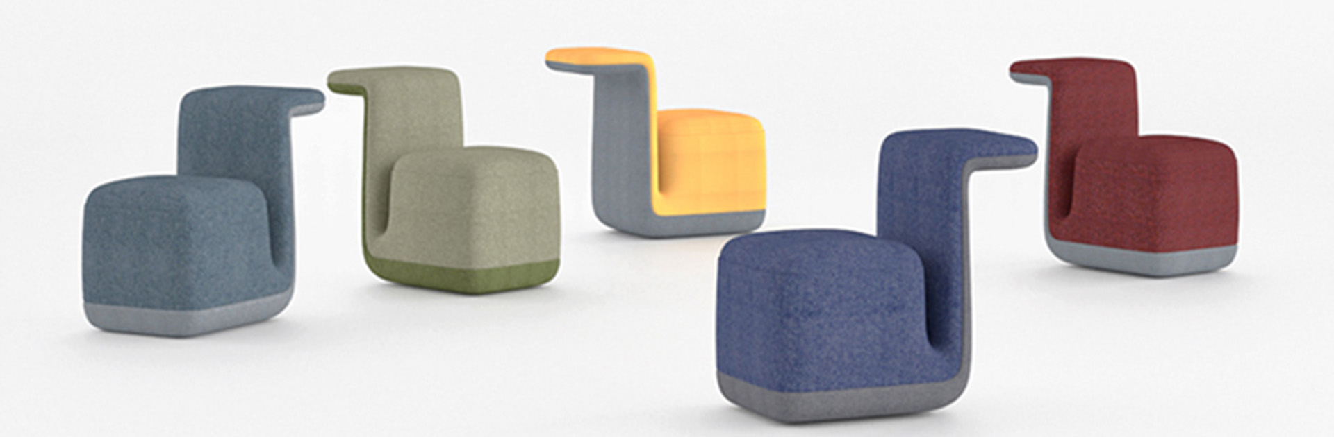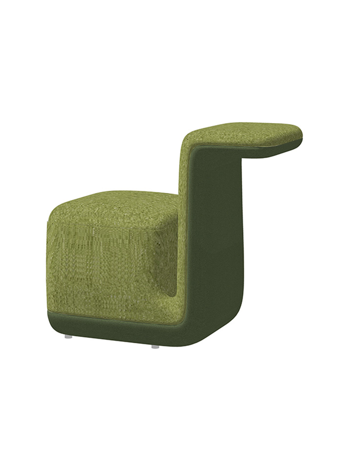 The Muse pouf is a multifunctional piece of furniture. It can be used as a chair, a writing table, a locker, and a storage box. The extended small tabletop not only serves as a place to store personal belongings but can also be used for temporary work. When people feel tired, they can lean on it and relax. The gap between the pouf and the backrest is designed to accommodate books and magazines, providing a more flexible and convenient reading option in public spaces.