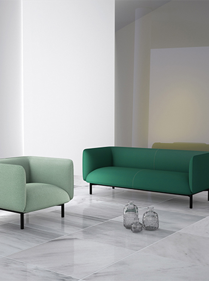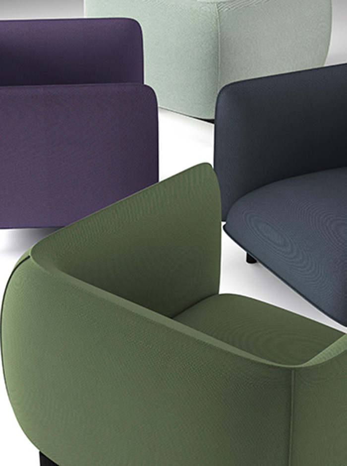 Inspired by jelly sweets, the shape of the Suede is round, organic, and elegant. With a smooth, rounded touch, the shapes of the back and armrests provide an excellent seating experience as well.
