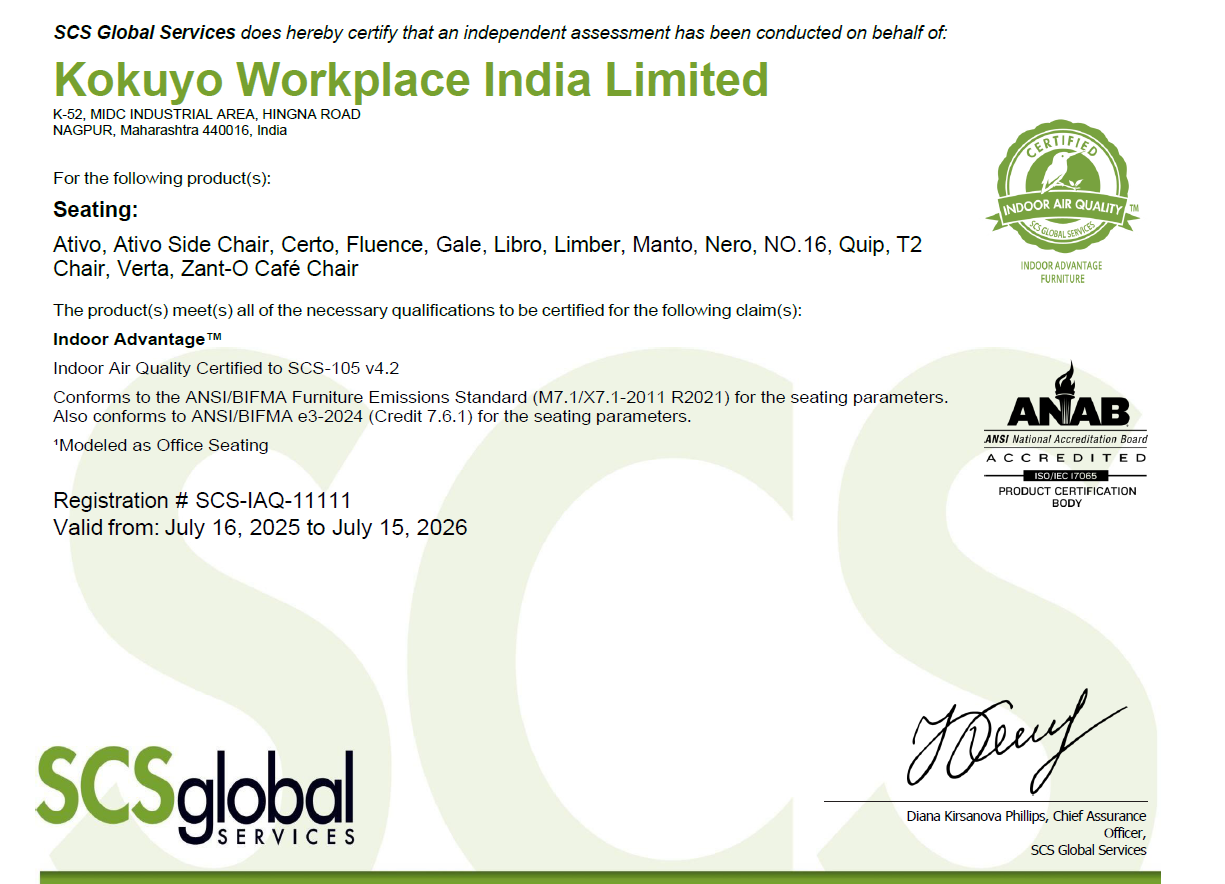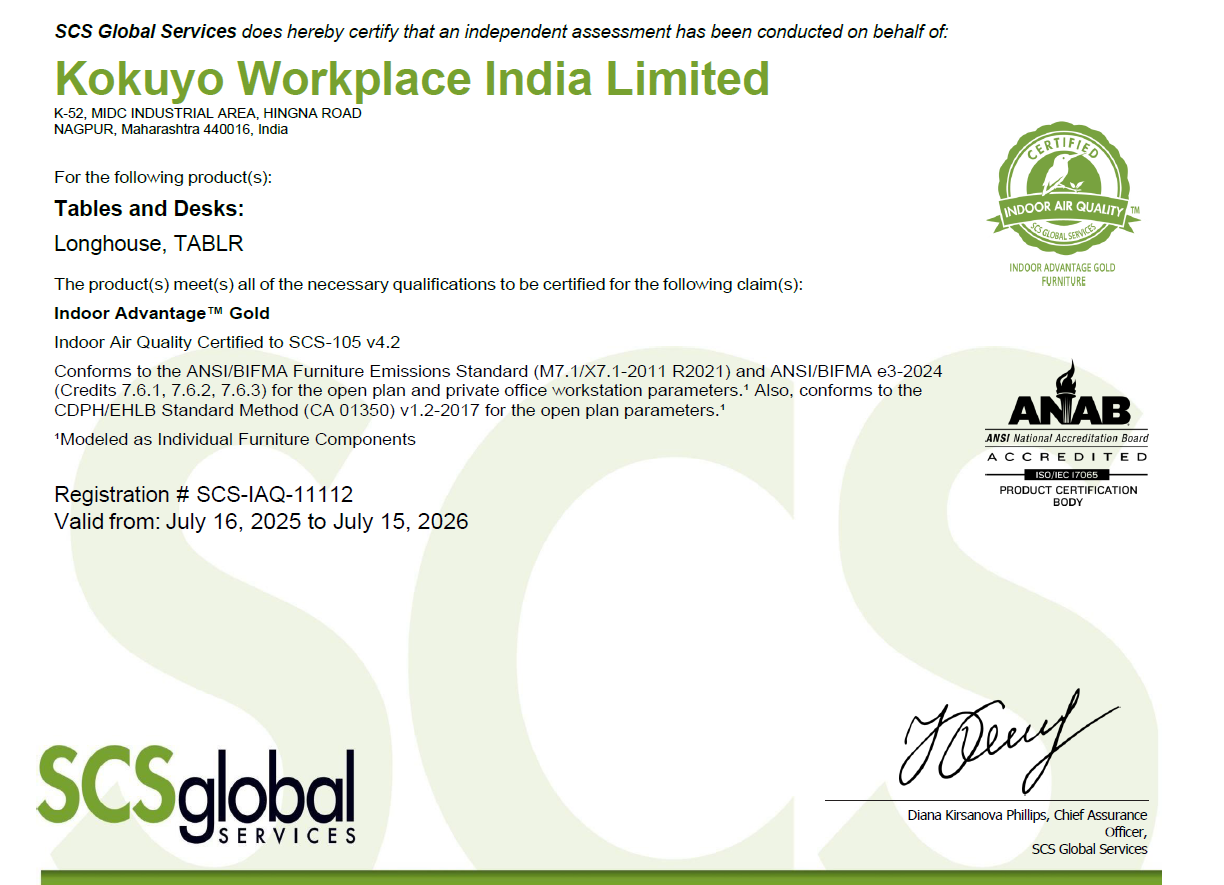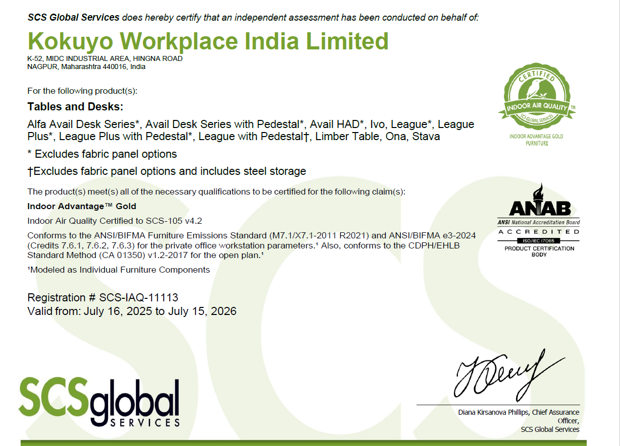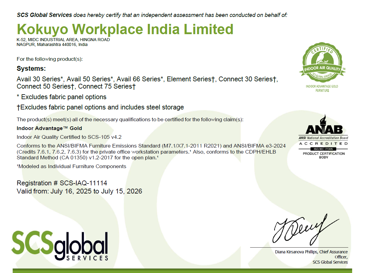 We at Kokuyo Workplace India Limited are committed to design and manufacture products that have